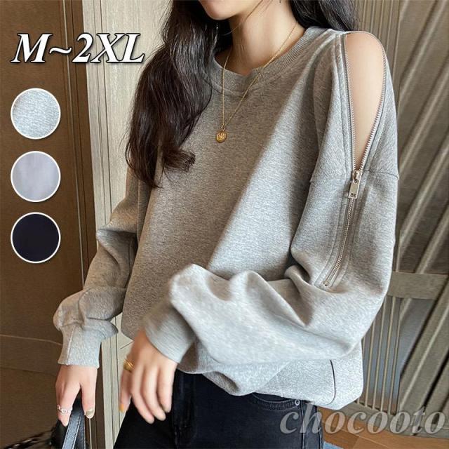 肩出し パーカー レディース トップス プルオーバー 無地 長袖 トレーナー 肩見せ スウェット カットソーオープンショルダー おしゃれ カジュアル ゆったり
