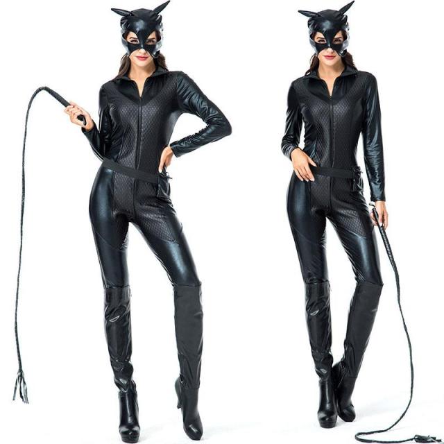 ハロウィン 全身タイツ 黒ネコ ボンテージ ライダースーツ風 セクシー 大きいサイズ コスプレ衣装 エジプシャンキャット 女神 大人用 女性用 コスチューム