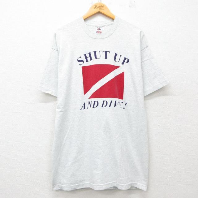 【商品名】 XL★古着 フルーツオブザルーム 半袖 ビンテージ Tシャツ メンズ 90年代 90s SHUT UP 大きいサイズ ロング丈 クルーネック USA製 薄グレー 霜降り