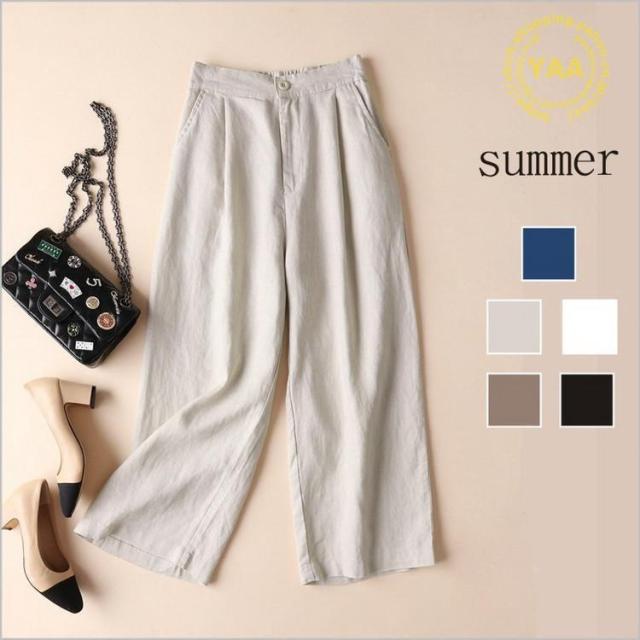 レディース ワイドパンツ 春 夏 秋 スカーチョ ガウチョパンツ リネン 通勤 体型カバー 9分丈 綿麻