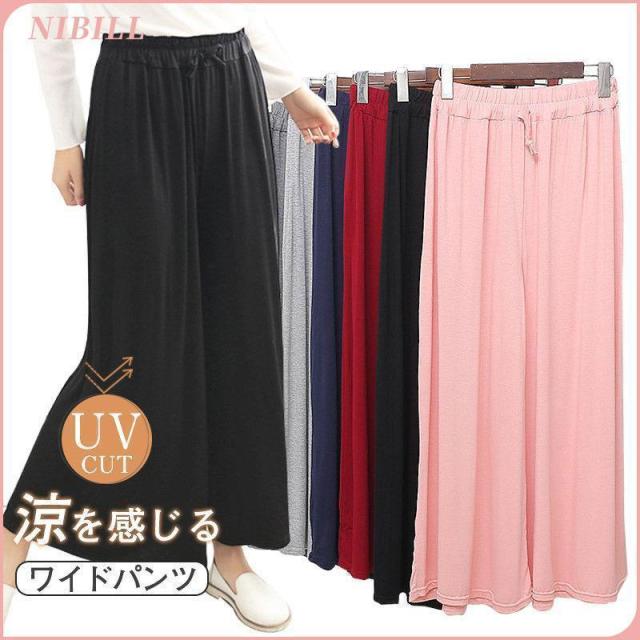 ワイドパンツ 春 夏 秋 レディース 冷感 ボトムス ロングパンツ ガウチョパンツ 紐付け マキシ 七分丈 九分丈 ゆったり シンプル スカーチョ ルームウェア