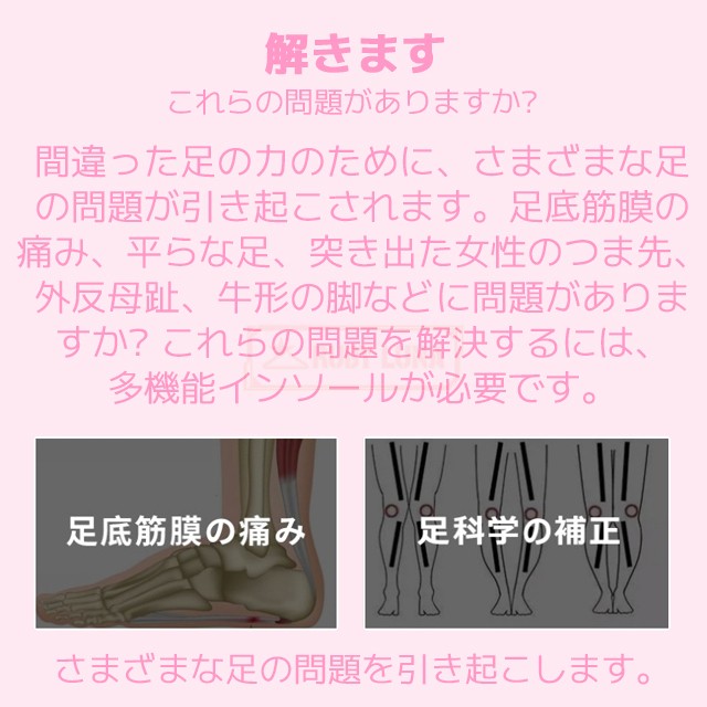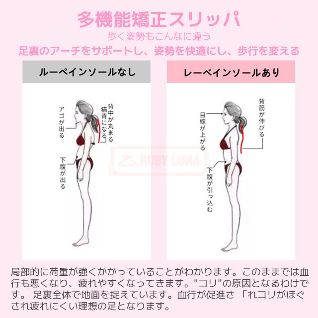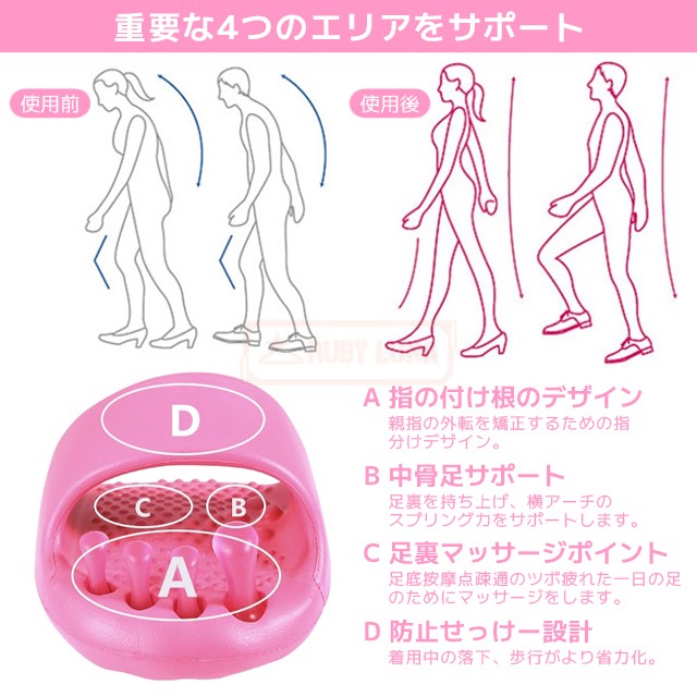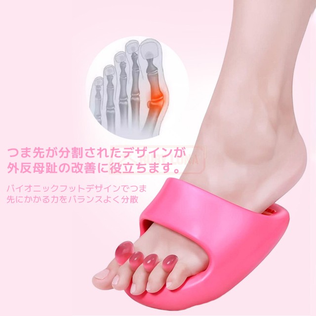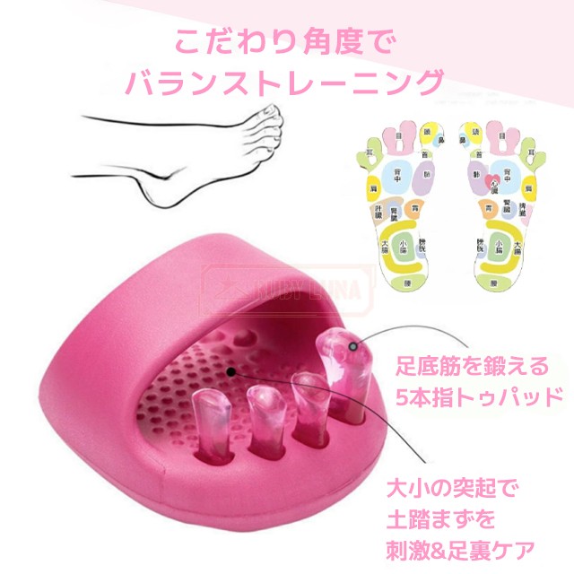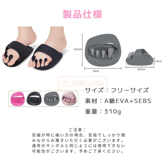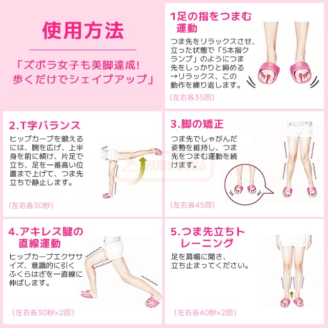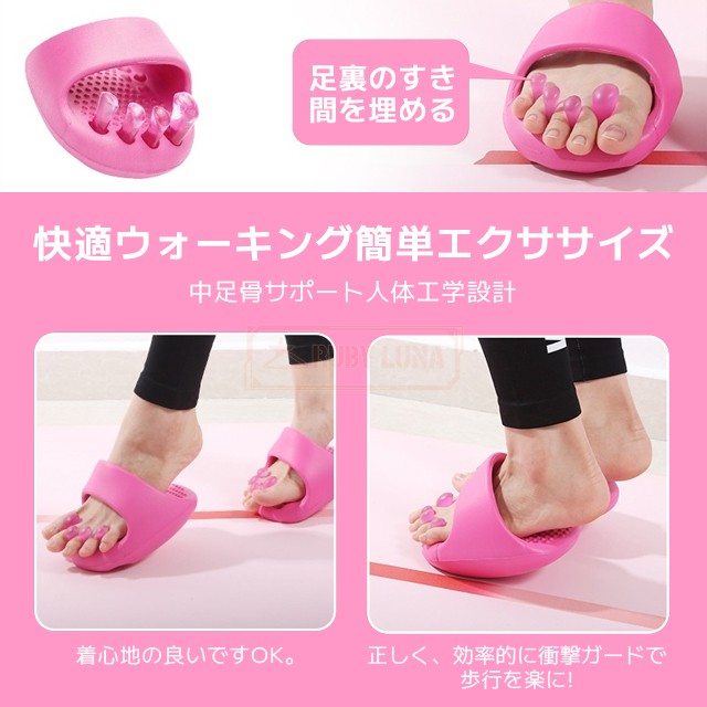 | 特徴 | ◆5本指にしっかりフィットする構造で足指を自然に広げ、姿勢を整えながら体幹をサポート。日常の動作の中で筋肉にアプローチし、無理なく美脚・足痩せを目指せます。 ◆底面の突起が足裏全体に優しくフィットし、ツボを心地よく刺激。やむくみの軽減、疲労回復にもつながり、毎日履くだけで自然とケアができます。 ◆朝と夕方歯磨き、料理や掃除などの家事の合間にも履くだけでOK。特別な運動不要で、ながらエクササイズが可能。時間がない方にも無理なく取り入れられるアイテムです。 ◆歩くだけでスッキリ美脚へ 足裏のツボを心地よく刺激し、血行を促進&軽い運動効果。むくみを軽減し、すっきりしたラインへ導く。 ◆姿勢を整え、美しいスタイルへ 土踏まずを支えるアーチサポートで、重心を安定。自然と姿勢が整い、立ち姿も歩く姿も美しく。 ◆一日の疲れをリフレッシュ 足指ストレッチから足裏の心地よい刺激まで、履いた瞬間リラックス効果をもたらし、心も体も軽やかに。 |