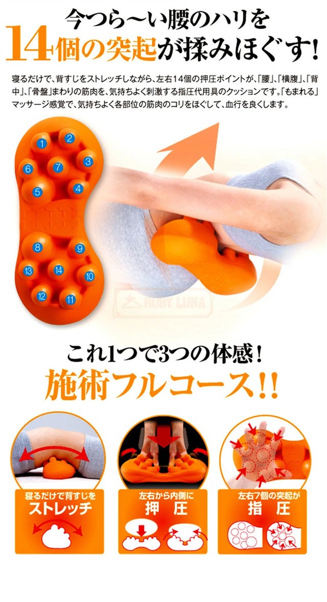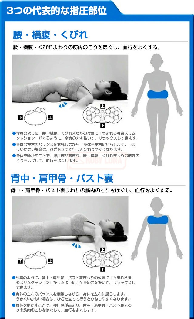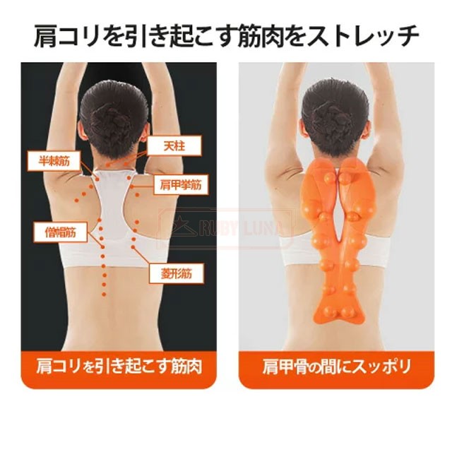 | 特徴 | ◆肩甲骨をほぐして、肩コリスッキリ! ◆肩甲骨専門の整体師監修。 ◆整体師の手技を再現し、ゆらゆら揺れて自分ではほぐせない背中を指圧します。 ◆肩甲骨とその周りの筋肉を指圧する18個の突起と、背中をサポー トするこだわりの曲面形状。 ◆左右にゆらゆら揺れて、手が届かない場所もしっかりと体重をか けて強力にほぐせます。 ◆裏面は、優しく胸を広げて背筋が伸びるポーズになり、リラック スにも最適。 |