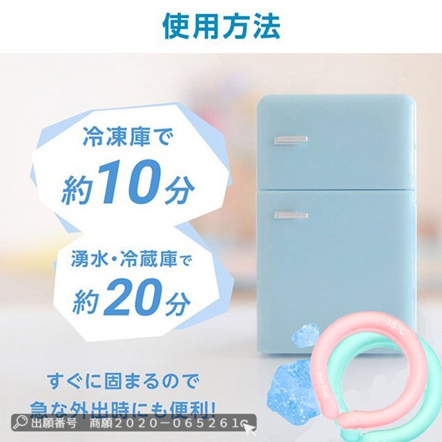 | 使用方法 | ◆冷水に浸けるだけ、氷水に効果アップ、保冷剤入りの保冷袋にも可 ◆冷凍庫に20分程入れる。冷蔵庫、クーラーボックスにもおすすめ |