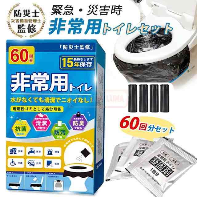 最安挑戦 送料無料 夏新作 簡易トイレ 60回分 防災士監修 防災グッズ 非常用 凝固剤 携帯トイレ コンパクト 災害用 消臭抗菌 ポータブルトイレ アウトドア 介護用 避難 台風 地震 車 渋滞 抗菌 消臭 防災 用品 トイレ 携帯 永久保存