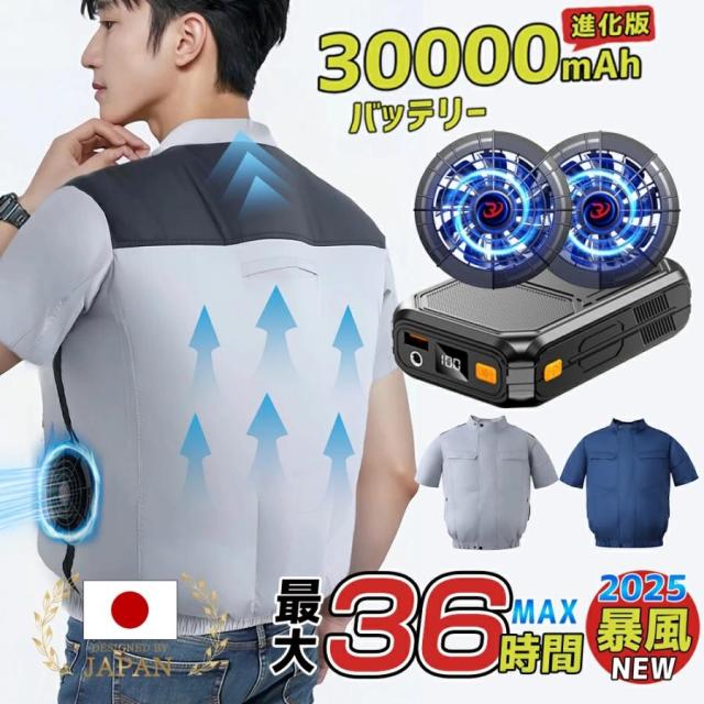 「正規品」「-15℃冷却効果」ファン付き作業服 バッテリー ファンセット 22V ファン付きベスト 半袖 フルセット 空調ウェア 冷却服 ファン2個付き ワークウェア 30000mAh 36H稼動可能 大風量 薄型 夏 熱中症対策