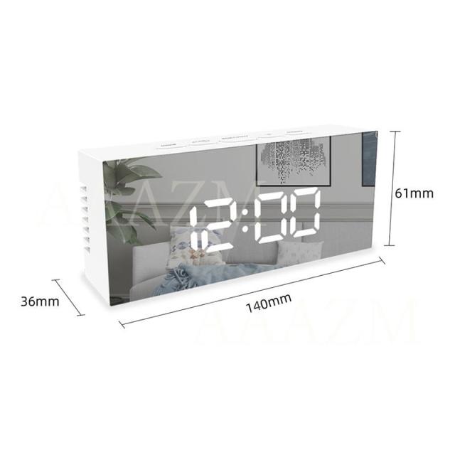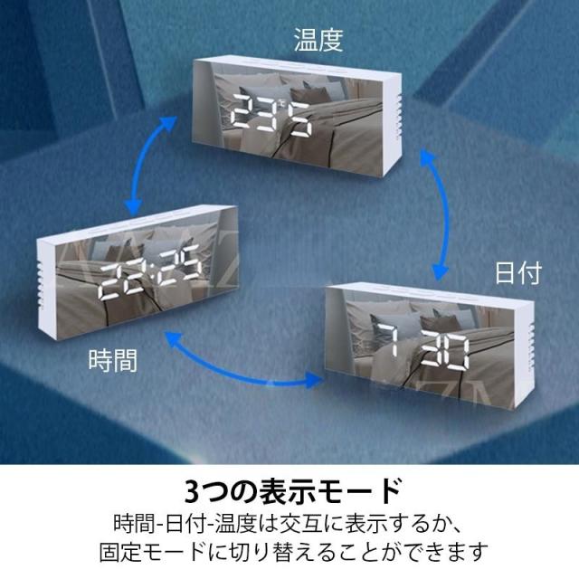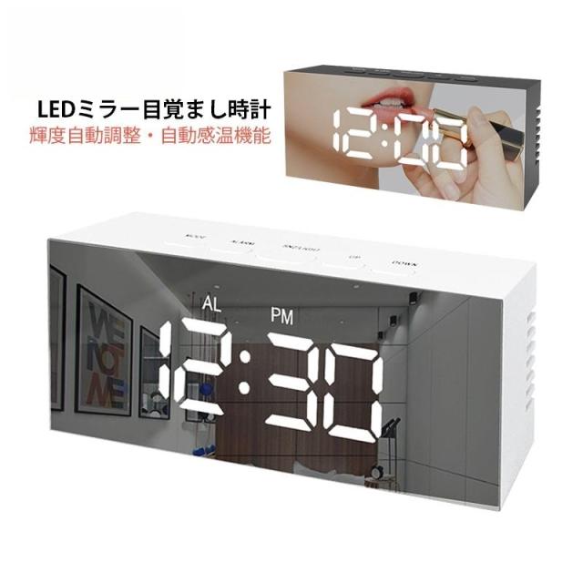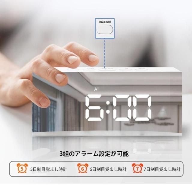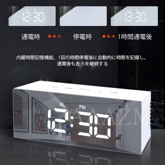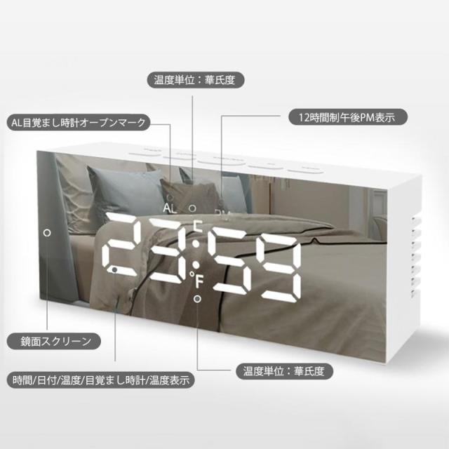 目覚まし時計 デジタル おしゃれ おきどけい ミラー 置き時計 USB給電式 多機能 学生 卓上 温度計 シンプル LED数字表示 高級感 リビング 寝室 インテリア時計