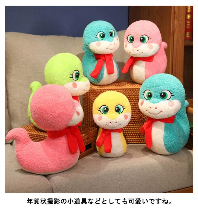 | コロンとしたキュートな蛇のぬいぐるみ。 2025年の干支ヘビぬいぐるみを新年にお迎えください。 もこもこ抱きしめたくなるぬいぐるみ、家の装飾として、ご自宅を愛と暖かさで満たします。 年賀状撮影の小道具などとしても可愛いですね。 | |