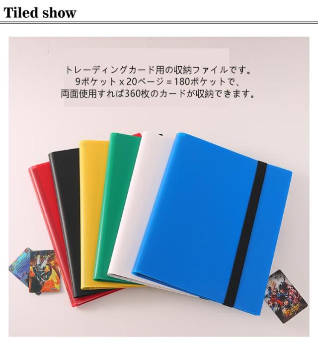 | トレーディングカードファイル トレカ 収納 ファイル の説明 トレーディングカード用の収納ファイルです。 9ポケットx20ページ=180ポケットで、両面使用すれば360枚のカードが収納できます。 整理して収納すれば、探しているカードもすぐに見つけ出せてとても便利です。 | |