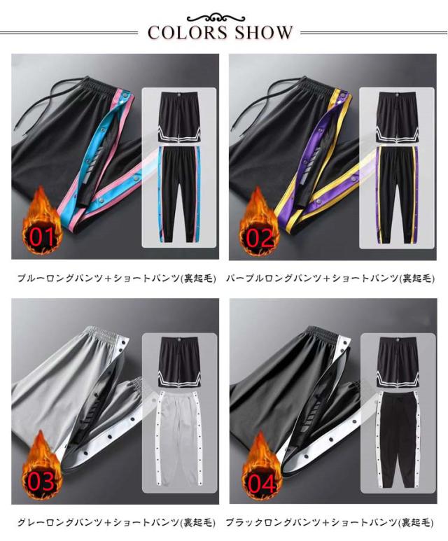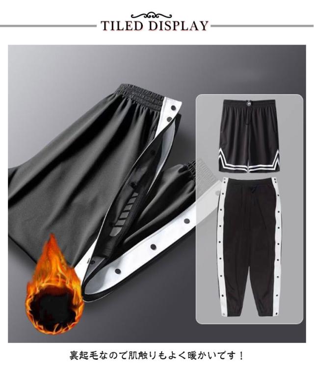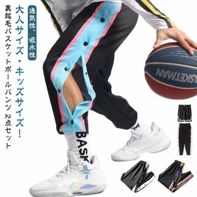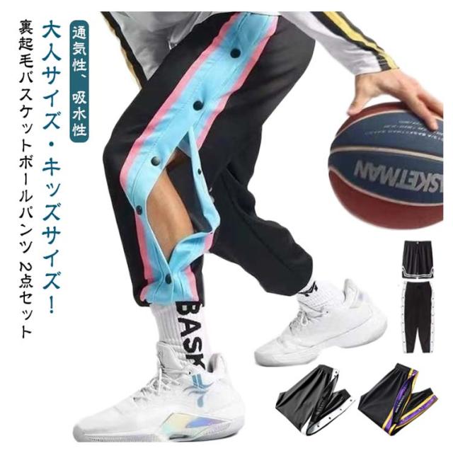 2点セット バスケパンツ 裏起毛 メンズ サイドボダン 2点セット ロングパンツ ショートパンツ 無地 スナップボタン バスケットボールパンツ 大人 暖かい 長ズボン 半ズボン キッズ ジャージ 下 スポーツウェア バスケットパンツ 子供 練習着 バスケ チーム 部活