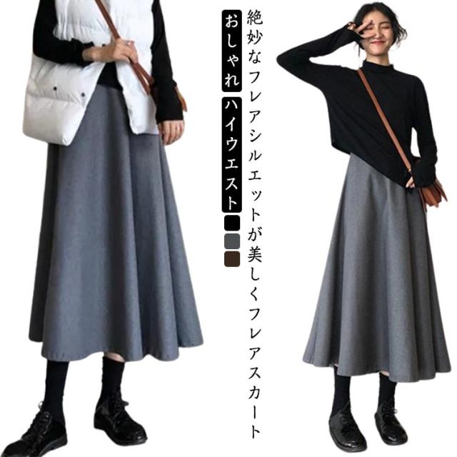 フォーマル フレアスカート 厚手 秋冬 ロング ボトムス スカート 膝丈 フレアスカート スカート aラインスカート ハイウエスト レディース きれいめ おしゃれ 無地 膝下丈 大きいサイズ 秋 冬 春 女性 大人