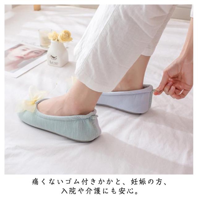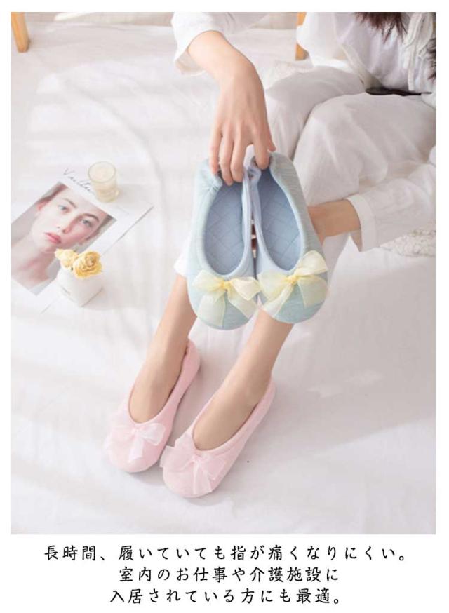 | 可愛いリボンザイン?室内履きルームシューズとしてお家でのリラックスタイムに最適です。 痛くないゴム付きかかと、妊娠の方、入院や介護にも安心。 長時間、履いていても指が痛くなりにくい。室内のお仕事や介護施設に入居されている方にも最適。 軽いから疲れにくい。持ち運びも楽々。 ご自宅でのスリッパやお部屋でのルームシューズとしてはもちろん、会社のオフィス用や学校、体育館、病院内などあらゆる場面でお使いいただけます。 | |