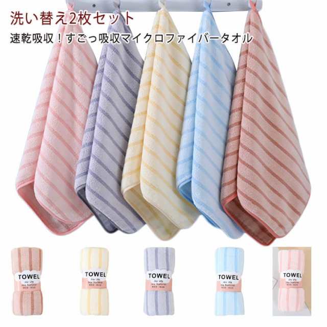 ふわふわ 速乾タオル 厚手 【2枚セット】 ヘアドライタオル 吸水速乾 タオルキ 子供用 ストライプ 吸水タオル フェイスタオル マイクロファイバー お風呂上がり お風呂 プール 旅行 超高吸水 髪の毛 大幅時短 大人 【2枚セット】 ヘアケア