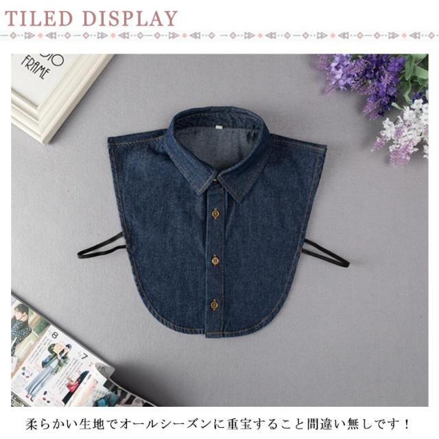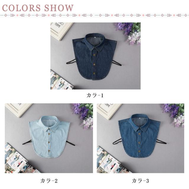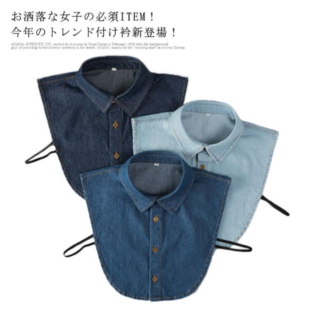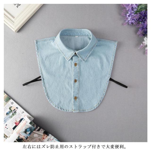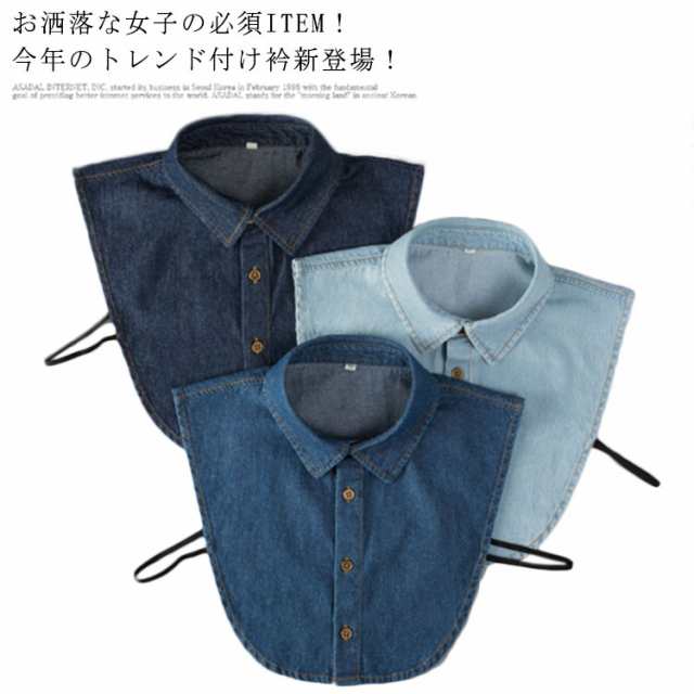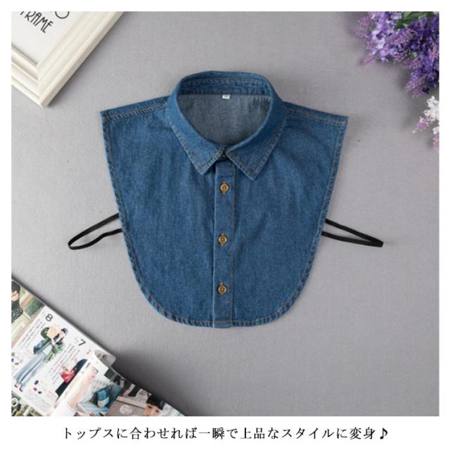シャツ襟 角襟 ヘアーゴムー付 ブラウス お洒落 レディース レイヤード 重ね着 春秋 カジュアル デニム襟 つけ襟