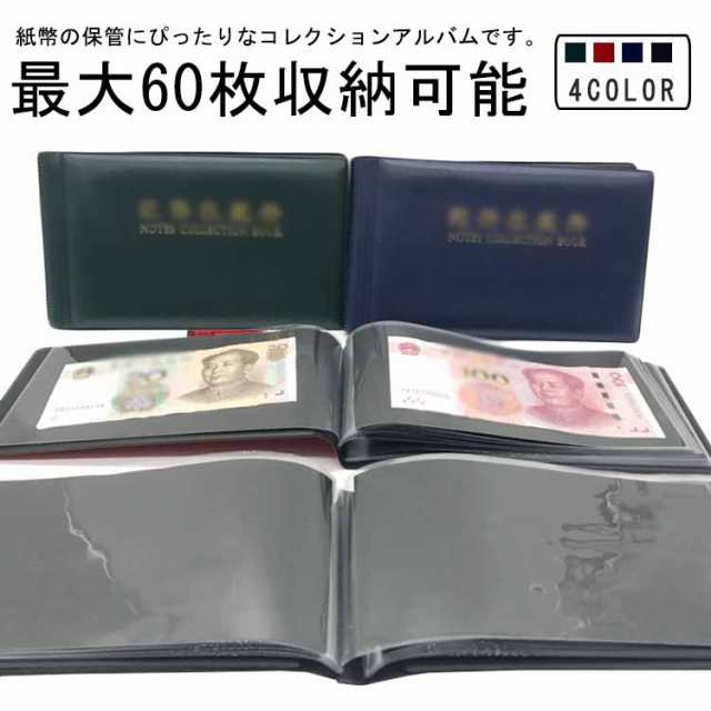 お札 収納ファイル 保管 紙幣コレクションアルバム 紙幣ケース 紙幣 紙幣ホルダー 紙幣アルバム コレクション ケース 収納可能 旧紙幣 お札ファイル 保存 30ページ 最大60枚 紙幣アルバム コンパクト