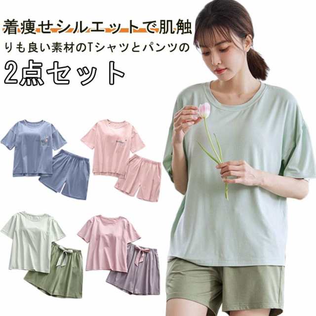 ゆったり 薄手 Tシャツ 短パン レディース 夏 半袖 ブラ付き 半袖 部屋着 ルームウェア パジャマ 寝巻き 夏 部屋着 レディース 上下セット 半袖 ショートパンツ 春夏 ナイトウェア セットアップ 胸パッド付き 2点上下セット 締め付けない
