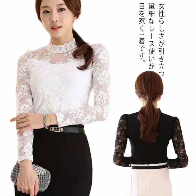 春 インナー 肌着 長袖 レディース トップス レース シースルー 長袖 夏 薄手 vネック 華やか 着回し 秋 上品 きれいめ 白 ブラック 黒 下着 刺繍