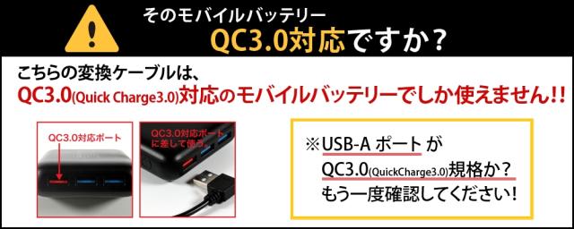 ※必ずQC3.0(クイックチャージ3.0)に対応したモバイルバッテリーをご使用ください。