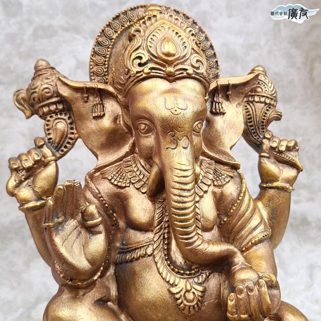 ガネーシャはヒンドゥー教の神。太鼓腹の人間の身体に 片方の牙の折れた象の頭をもった神で、4本の腕をもっています。