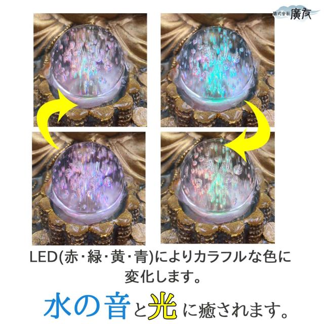 構造上、水を循環させ、龍珠が回転する仕組みの為、周りに多少水が飛び散る場合がございます。 予めご了承ください。
