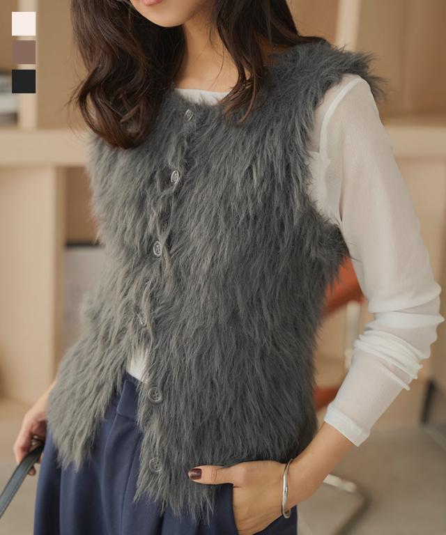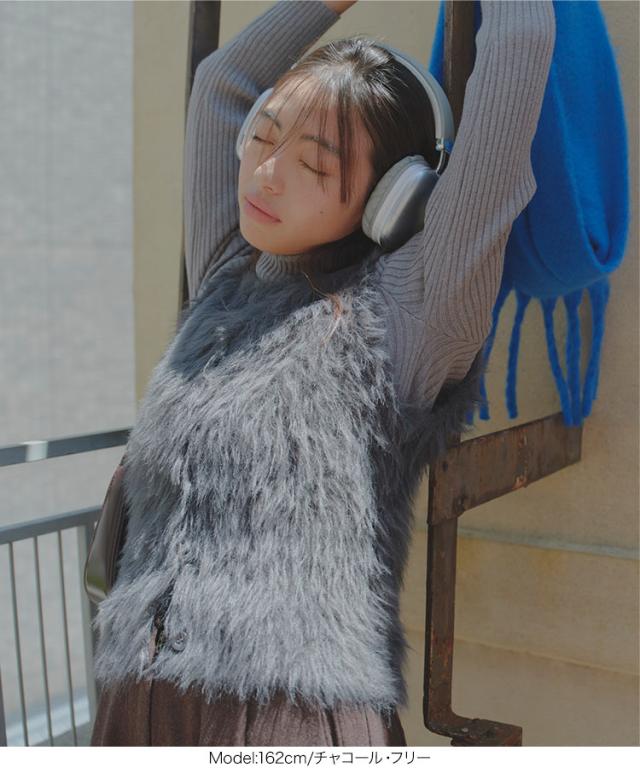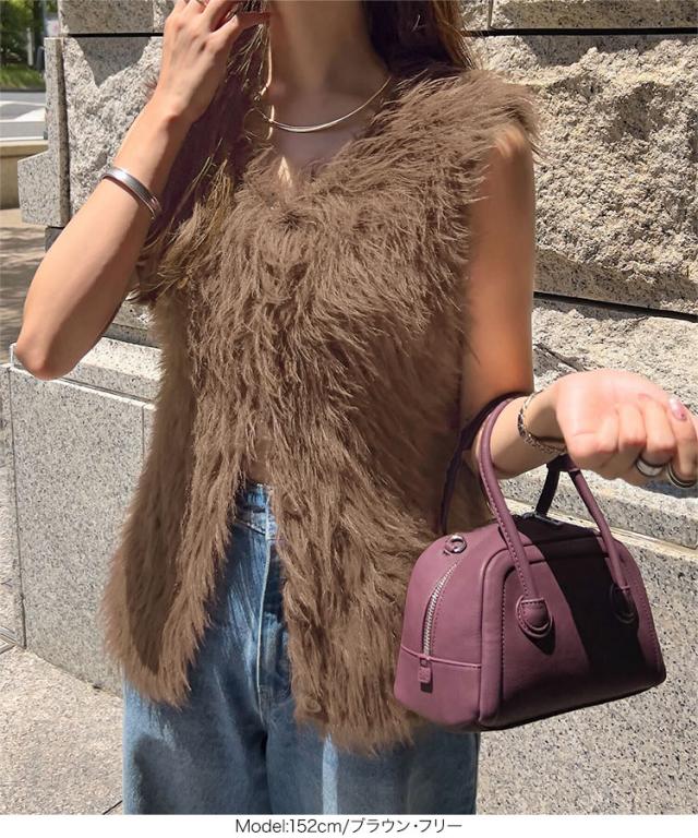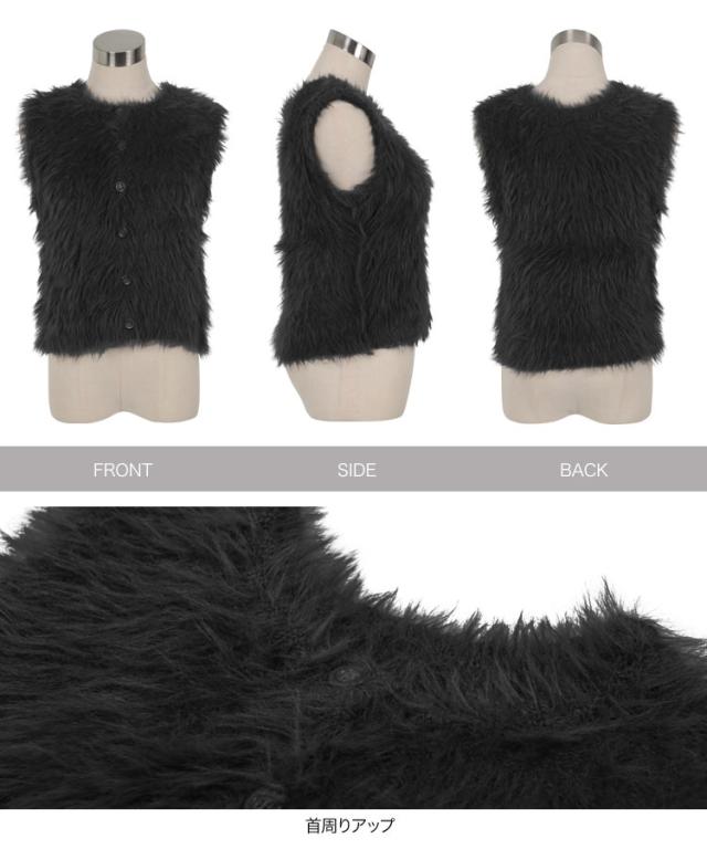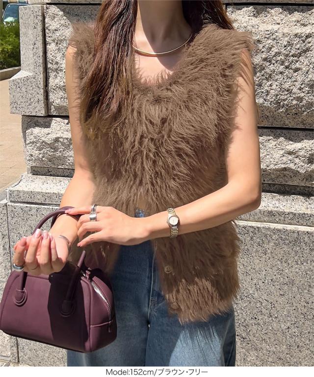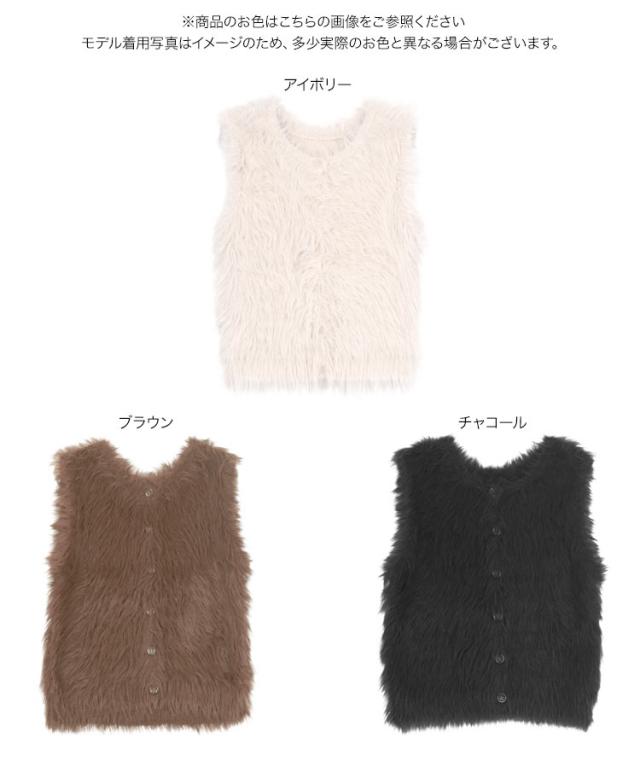 フェザークルーネックベスト N1211 入荷済 ベスト ニットベスト ジレ ノースリーブトップス ファー フェザー クルーネック カーディガン ショートベスト ロングフェザー
