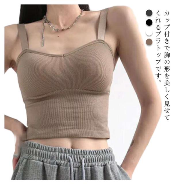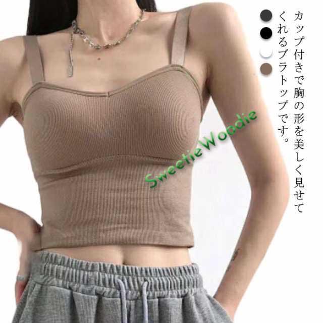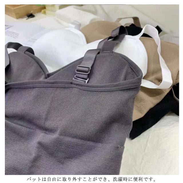リブ ストライプ キャミソール カップ付き 取り外し可能 Vネック タンクトップ カップ付きキャミソール キャミ インナー ナイト ブラ ブラキャミ ブラトップ レース 下着 肌着