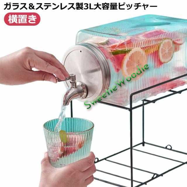 3L ガラス ガラス 横置き 水差し ピッチャー 洗いやすい 広口 ビール樽 ジャグ お茶ポット 蛇口付き 冷蔵庫 大容量 冷水ポット ドリンクサーバー おしゃれ 水出し 麦茶ポット 大麦茶 ジュース ドリンク 炭酸 梅酒 果実酒 ガラス瓶 ジュース作り