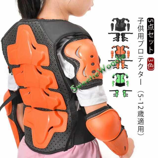 キッズ プロテクター 胸部 肩 腹部 腰 膝 腕 守る 5点セット ボディプロテクター*1 肘プロテクター*2 膝プロテクター*2 子供用 セット 自転車 スケートボード バイク サイクルウエア 耐衝撃 スノボ 通気 安全 スポーツ用 軽量