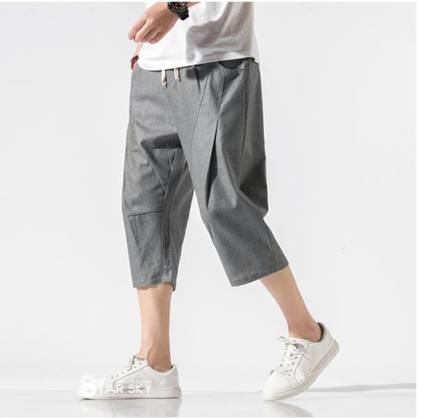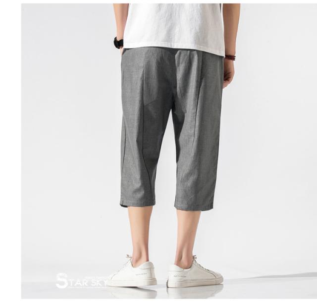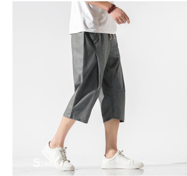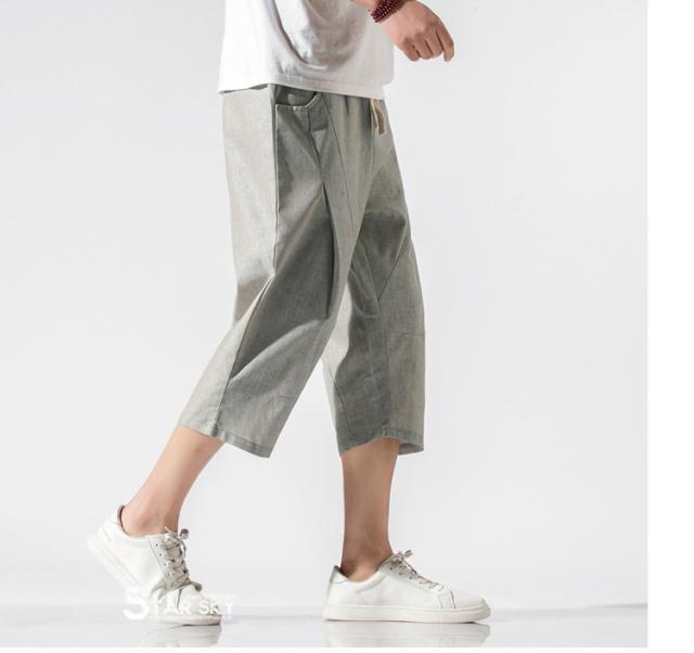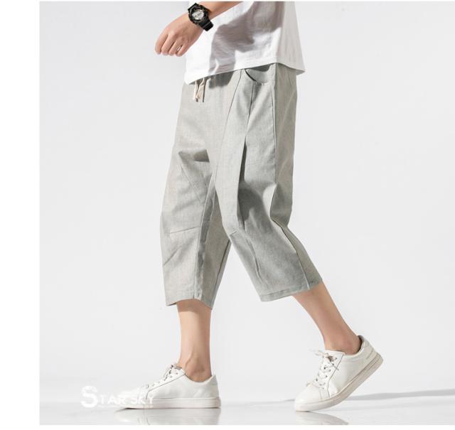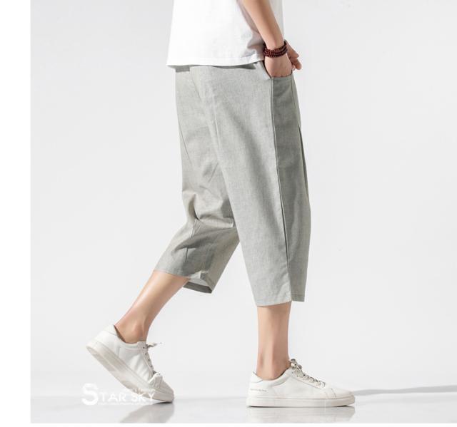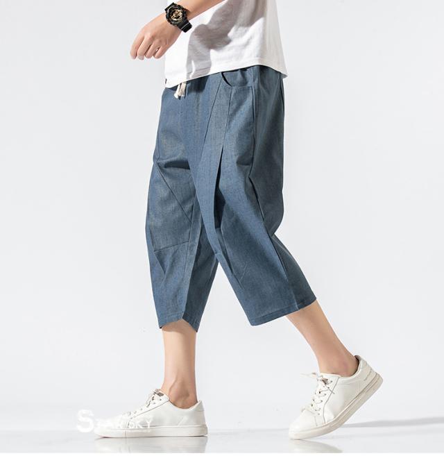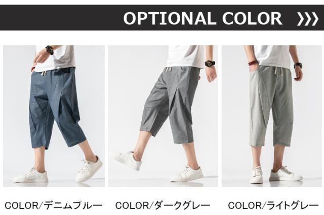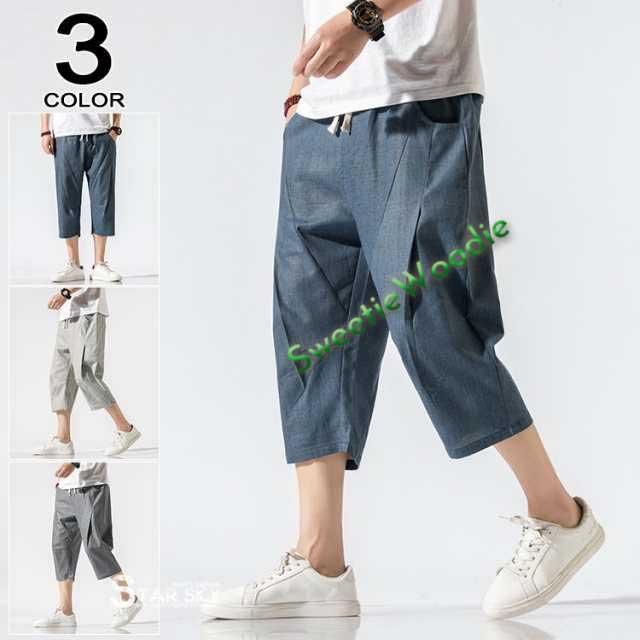 麻パンツ サルエルパンツ リネンパンツ メンズ 七分丈ズボン ワイド バギーパンツ 無地 ゆったり スラックス クロップドパンツ