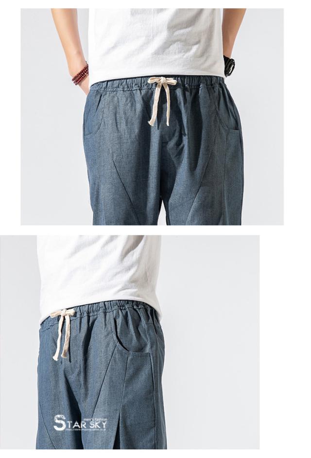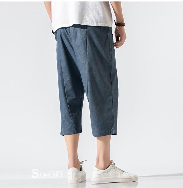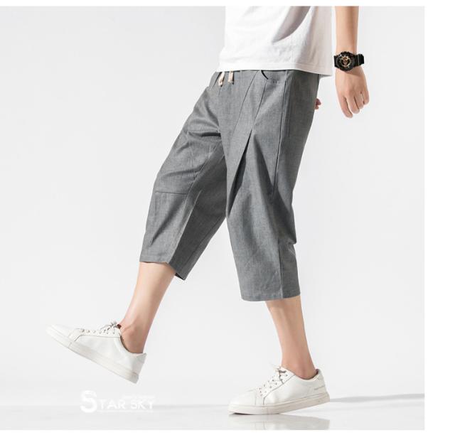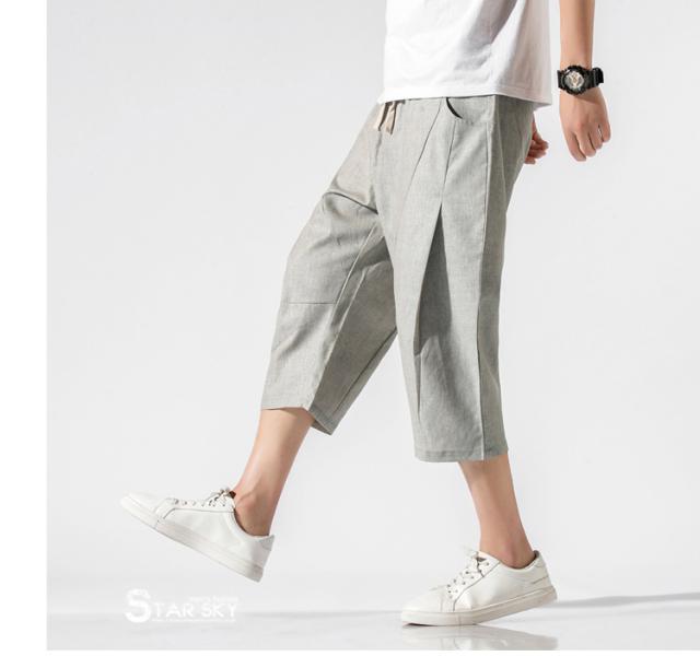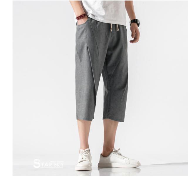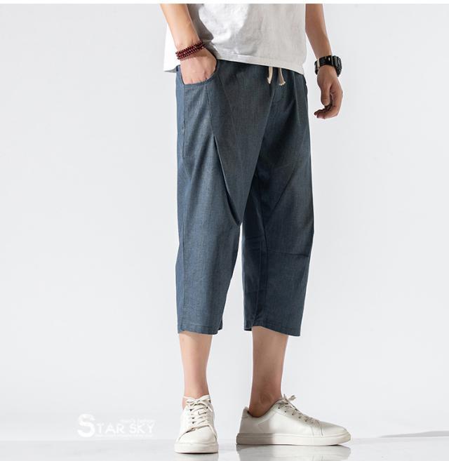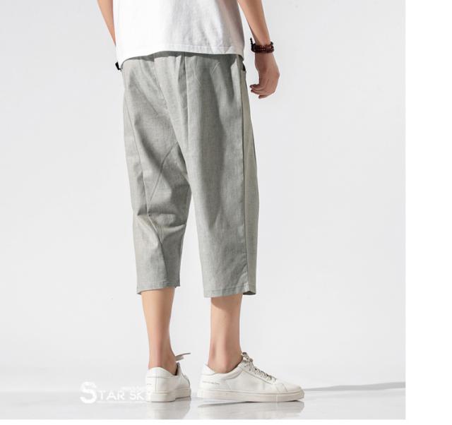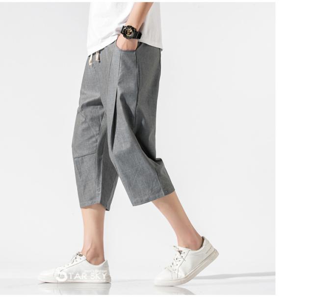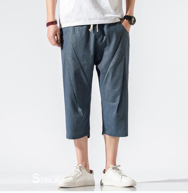 麻パンツ サルエルパンツ リネンパンツ メンズ 七分丈ズボン ワイド バギーパンツ 無地 ゆったり スラックス クロップドパンツ