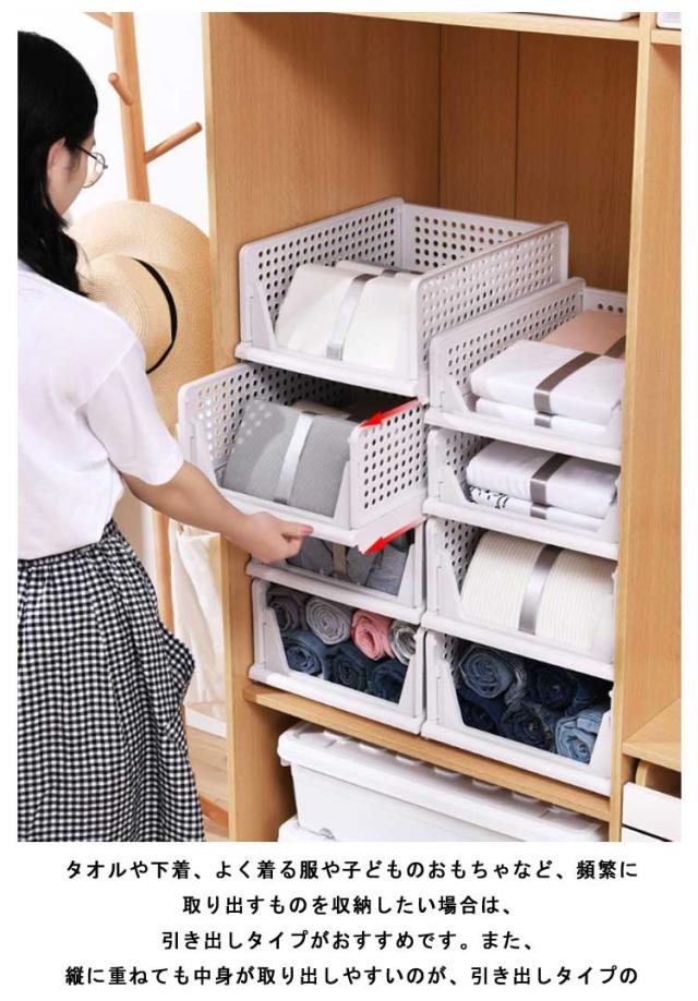 | クローゼットや押入れで大活躍の収納ケースセット 使わない時折り畳み可能です。 簡単に積み重ねられる引き出し式なので、スムーズにスライドできます。 タオルや下着、よく着る服や子どものおもちゃなど、頻繁に取り出すものを収納したい場合は、引き出しタイプがおすすめです。また、縦に重ねても中身が取り出しやすいのが、引き出しタイプの魅力。 衣類の収納にぴったり。通気穴があり、湿気がこもる心配がありません。収納した洋服を湿気やカビから保護してくれます。 不要な時に折りたたんで簡単に収納できるので、保管スペースが省ける収納ボックスである。 清潔感のあるホワイトカラーとシンプルなデザインで、どんな部屋にもマッチ。 | |