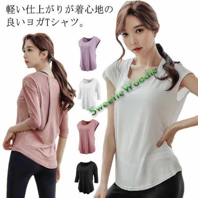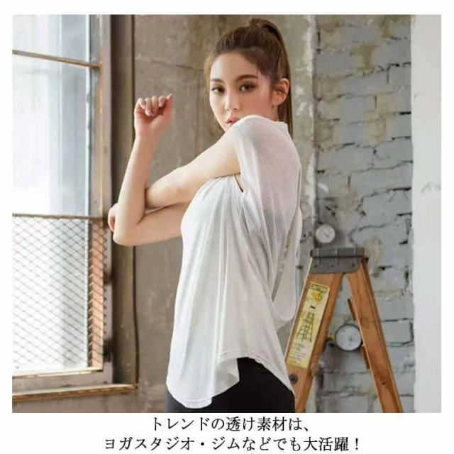 ヨガTシャツ ヨガウェア tシャツ トップス レディース ホットヨガ フィットネスウェア スポーツウェア 体型カバー Tシャツ カットソー 五分袖 ノースリーブ 水着 吸汗 速乾 軽量 ランニング ストレッチ ピラティス メッシュ シースルー 送料無料