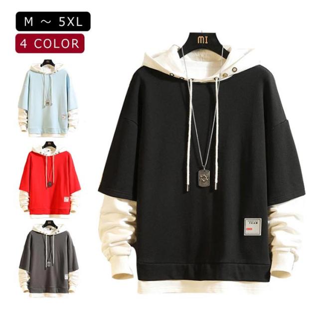 スウェット パーカー メンズ パーカー 春秋 長袖 大きいサイズ 重ね着 レイヤード スウェットパーカー マウンテンパーカー ジャージ プルオーバー ジップアップパーカー ライダースパーカー スウェット 秋 秋服 トップス 春