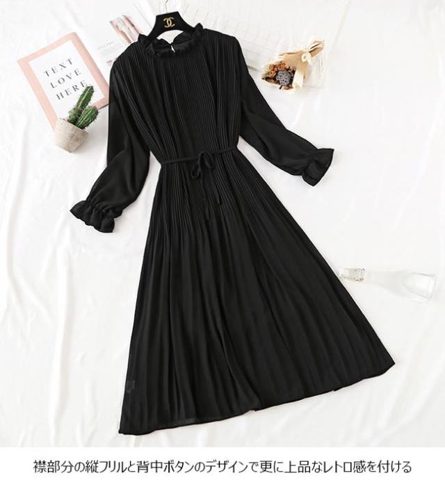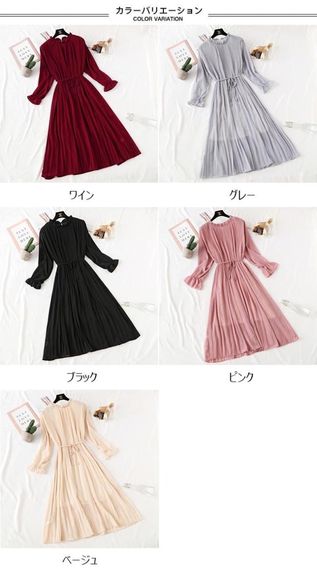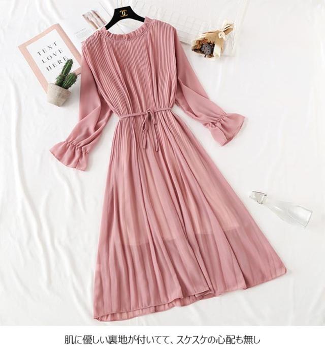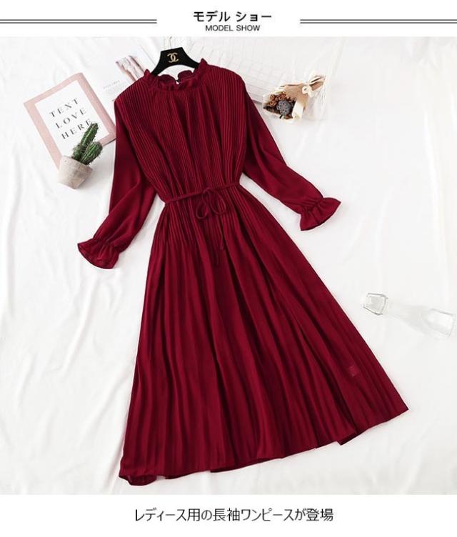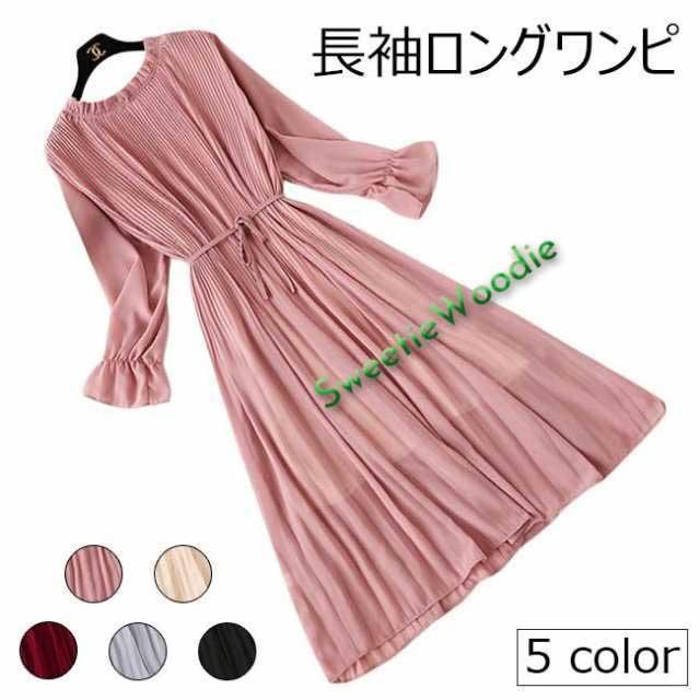 ロングワンピ レディース ワンピース 長袖 シフォンワンピ 裏地付き 女性 ドレス 長袖ワンピース 無地 春秋 マキシ丈ワンピース レトロ