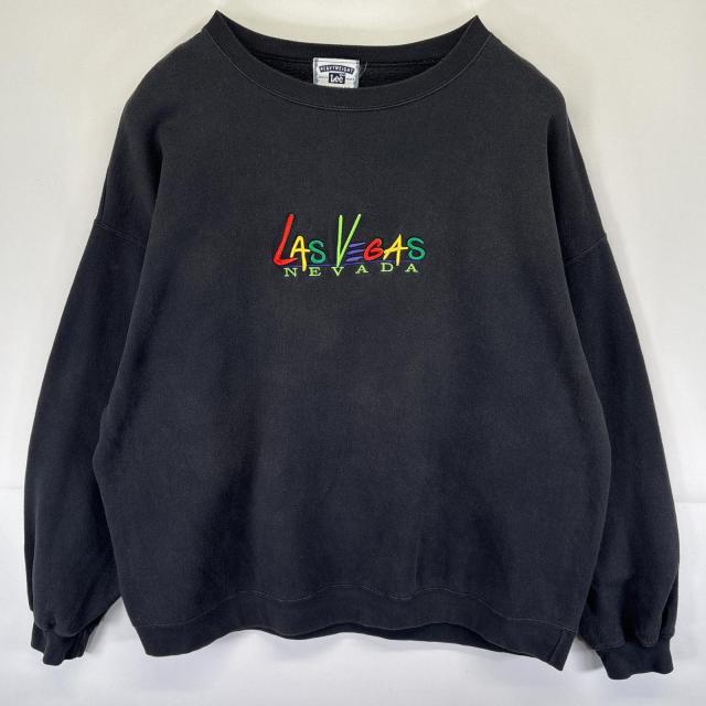 古着 90s/90年代 リー Lee スウェット トレーナー ロゴ刺繍 クルーネック プルオーバー 大きいサイズ XXL ブラック メンズ