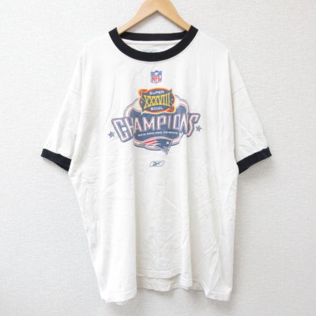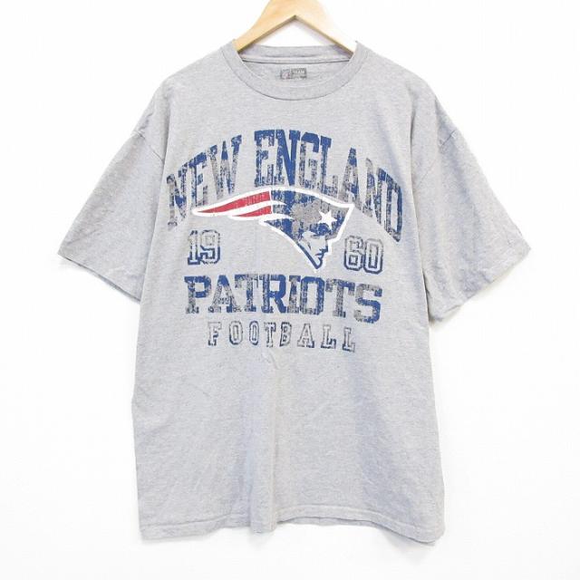 古着 半袖 Tシャツ メンズ NFL ニューイングランドペイトリオッツ 大きいサイズ クルーネック グレー 霜降り アメフト スーパ 中古 古着