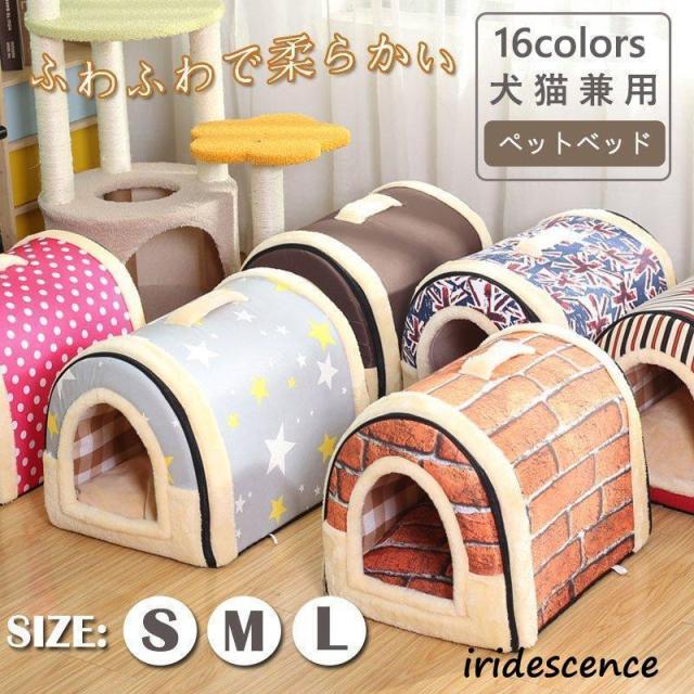 ドーム型 犬猫用ベッド ペットハウス 室内用 ペットベッド 犬の巣 2WAY 柔らか 通年用 保温 寝具 取り外して 洗える クッション付き 防水 滑り止め かわいい