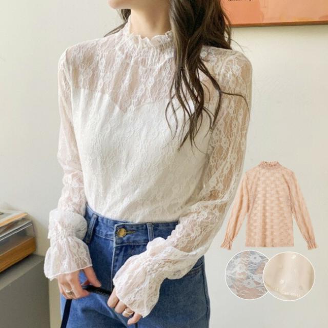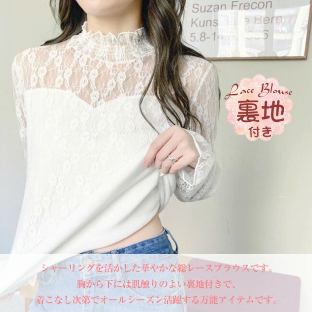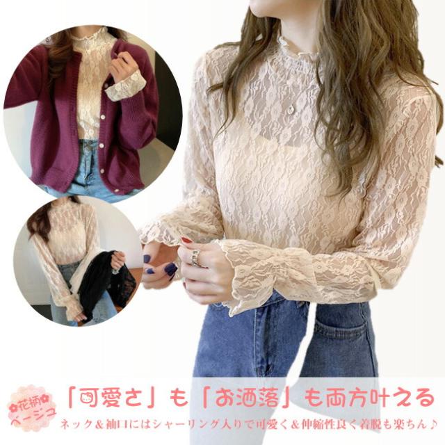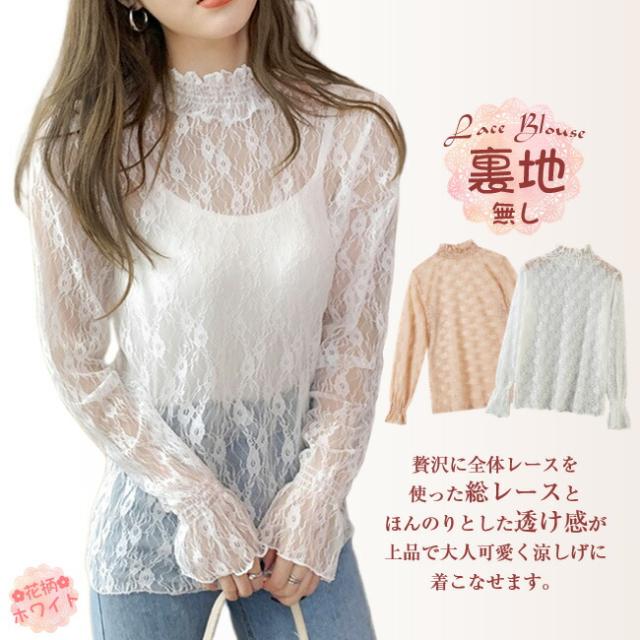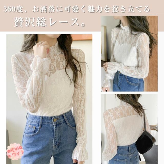 総レースブラウス シャツ 透け感 シアートップス シースルー レース 大人 インナー トップス ブラウス 立ち襟 ハイネック 花柄 レディース ファッション 伸縮性あり 着やすい 韓国