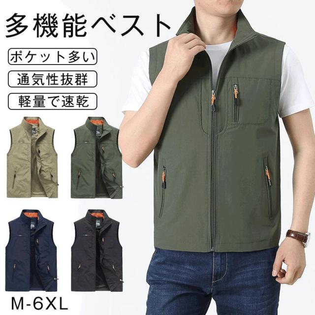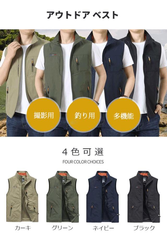 男性ベスト 夏 作業着釣り メンズ ベ トップス ベスト ジレ 豊富な品揃え カーキ グリーン ネイビー ブラック M L XL 2XL 3XL 4XL 5XL 6XL
