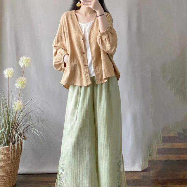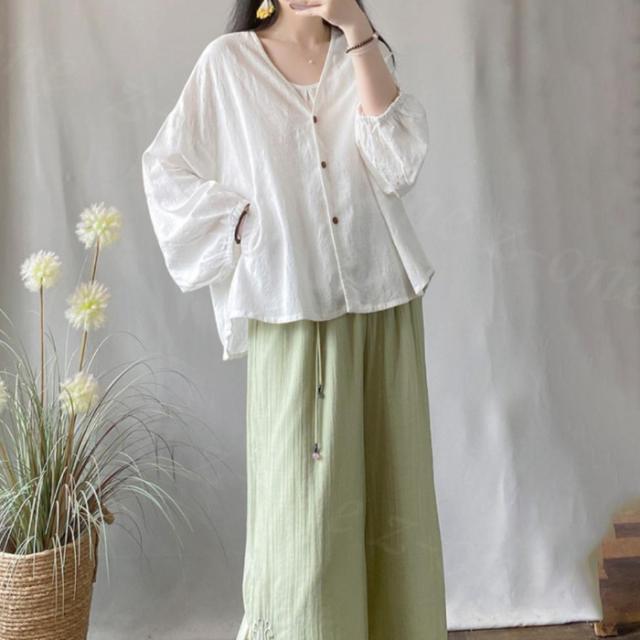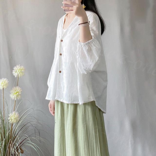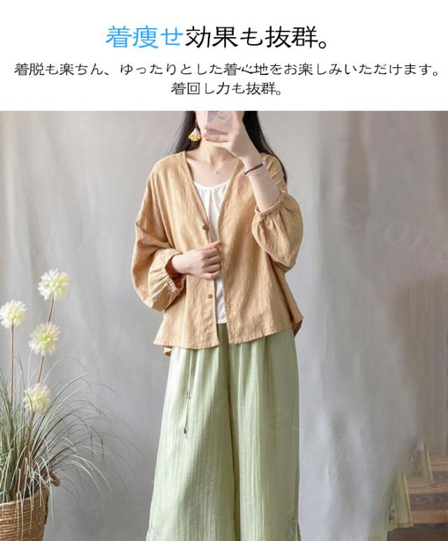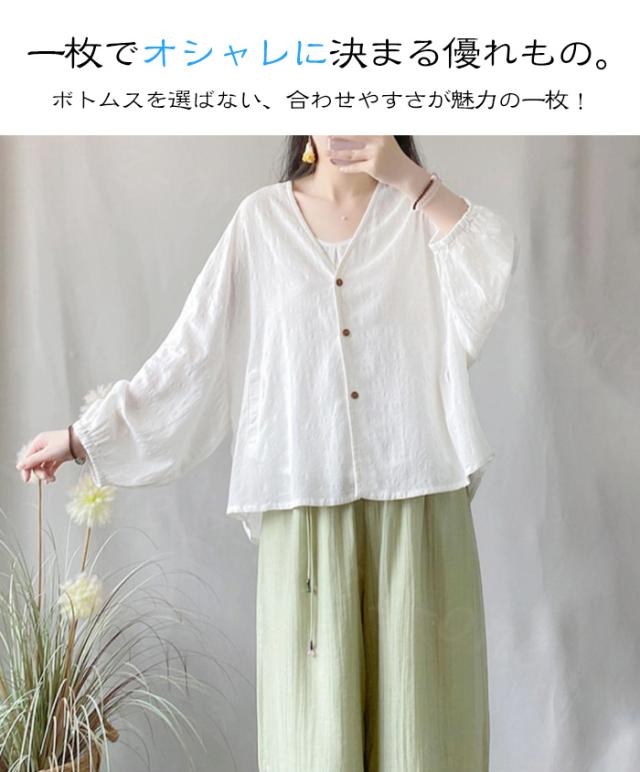 ブラウス シャツブラウス 長袖 ドルマンスリーブ 無地 綿麻 冷房対策 新作 送料無料 九分袖 シャツ トップス レディース 重ね着 上品 ボリューム袖 通勤 通学 オシャレ 体型カバー コーデ 入学式 入園式
