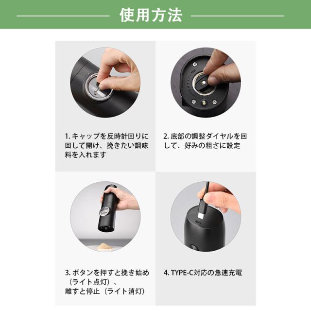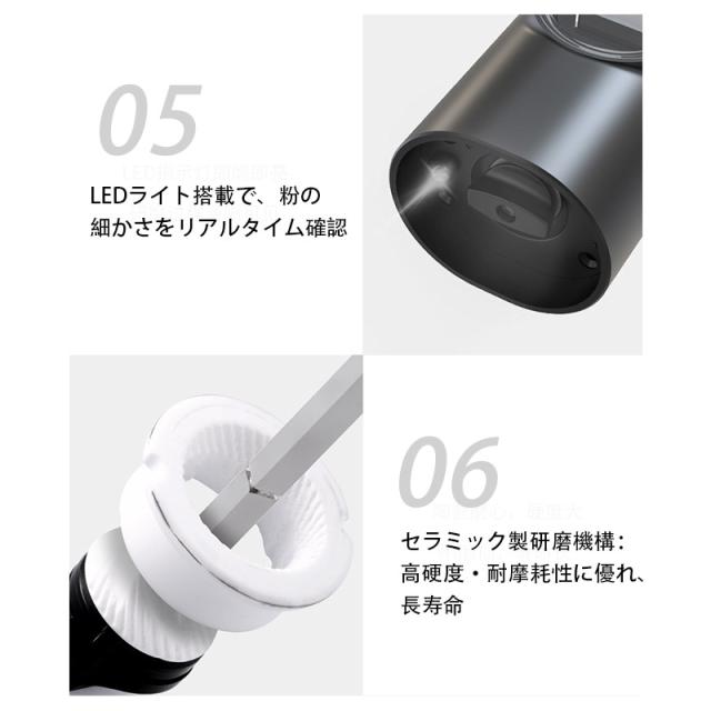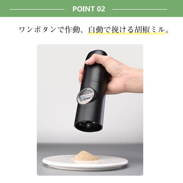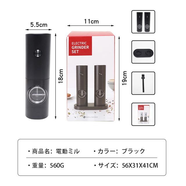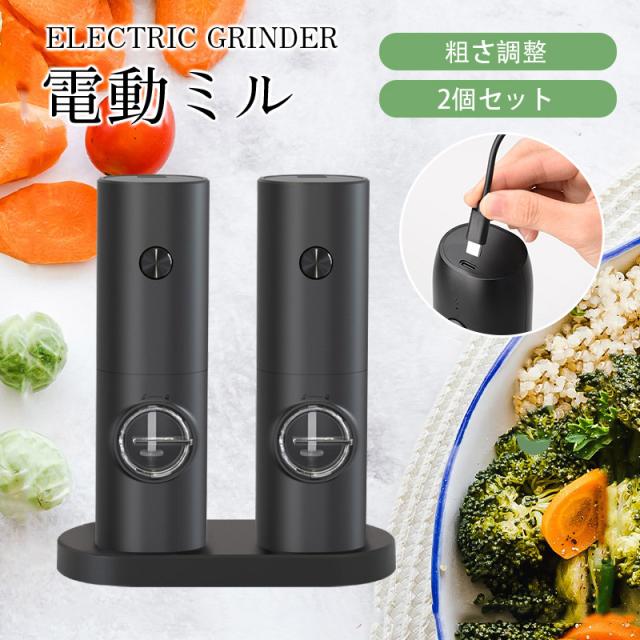 電動ミル 2個セット ペッパーミル USB 手元ライト おしゃれ 岩塩 胡椒 キッチン家電 調味料 調理器 調理用 家庭用 キャンプ 旅行 片手