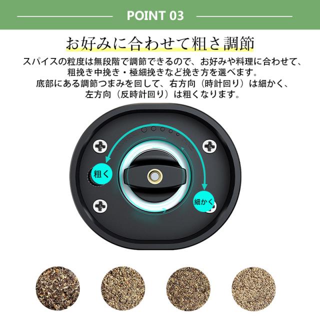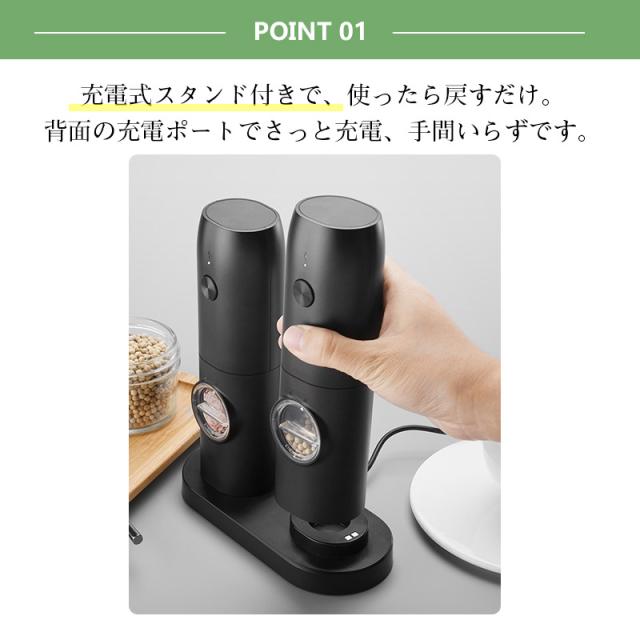 【キーワード】電動ミル 2個セット ペッパーミル USB 手元ライト おしゃれ 岩塩 胡椒 キッチン家電 調味料 調理器 調理用 家庭用 キャンプ 旅行 片手