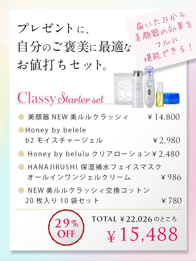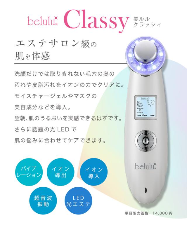 福袋価格9999円!美顔器 NEW 美ルル クラッシィスターターセット 超音波 角栓 イオン導入 イオン導出 光エステ LED クレンジング 充電式 美肌 毛穴ケア 毛穴汚れ 母の日 プレゼント 送料無料・海外使用可能・返品保証・日本製 belulu classy
