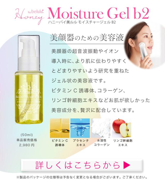●b2モイスチャージェル(50ml) 美顔器用に開発された専用ジェル。美容成分が肌にしっかり届き、うるおいをキープします。