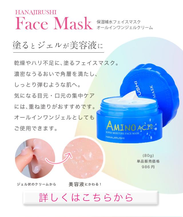●花印 オールインワンジェル(80g) ヒアルロン酸・コラーゲン配合。乾燥やハリ不足に。塗るフェイスマスクとして目元・口元の集中ケアにも。下地としても使用可。