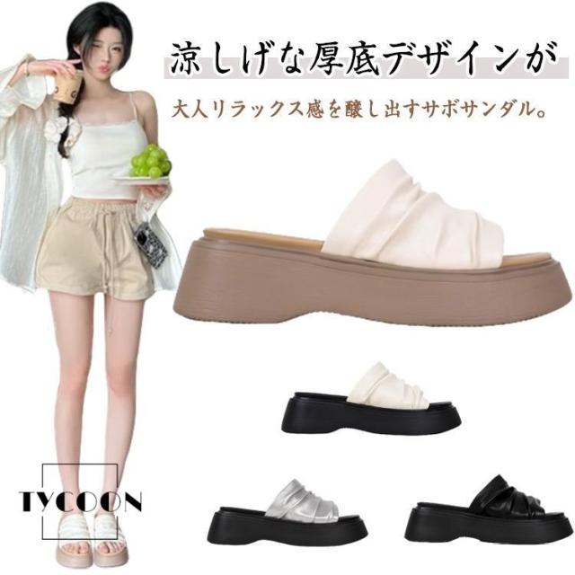 サンダル レディース 厚底サンダル 夏靴 メタリック プラットフォームサンダル 歩きやすい コンフォートサンダル 可愛い ガーリー靴 韓国風 ミュール