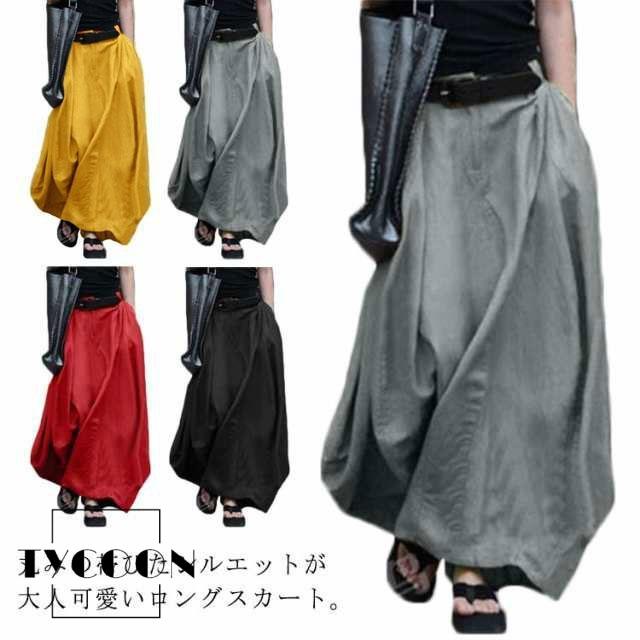 スカート ロングスカート バルーンスカート マキシ丈 Aライン 体型カバー 着痩せ 通勤 OL 無地 大きいサイズ レディース マキシスカー