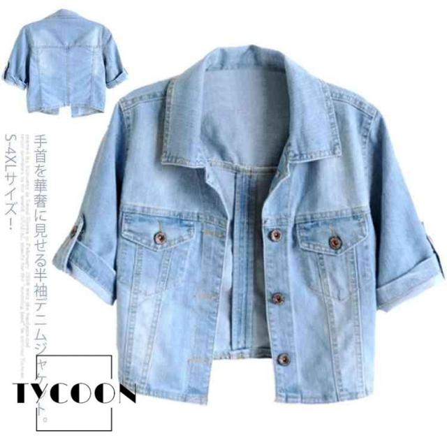 S-4XLサイズ!半袖デニムジャケット レディース デニムポレロ デニムジャケット Gジャン ショート丈 デニム ライトアウター 羽織り 半袖 五分袖