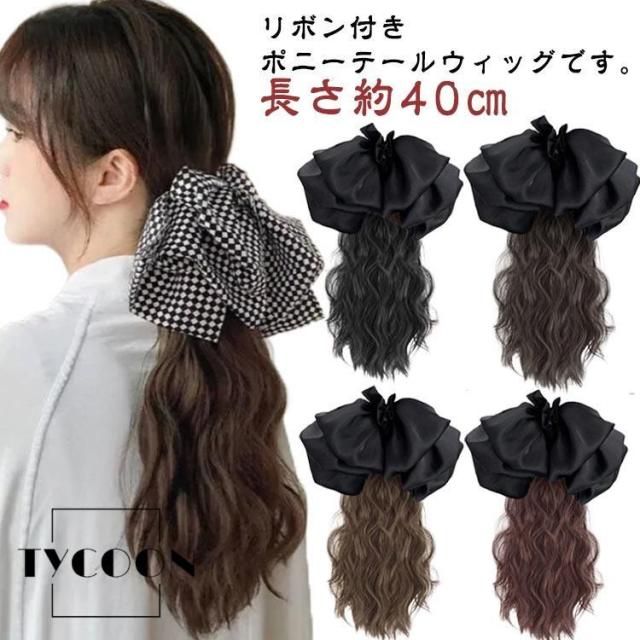 ポニーテール ウィッグ ビッグリボン付き ロング ウィッグ 部分ウィッグ つけ毛 付け毛 簡単装着 リボン付きポニーテールウィッグ イベント コスプレ