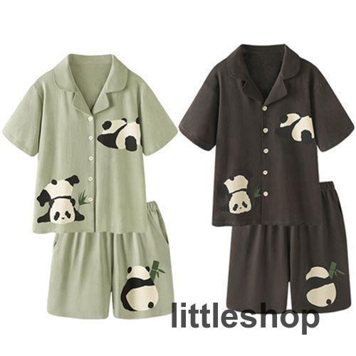 ペア パジャマ 半袖 夏 綿99% パンダ グレー 緑 前開き メンズ ルームウェア 外出 レディース ペアパジャマ ギフト おしゃれ カップル ペア 春夏 結婚祝い プレ